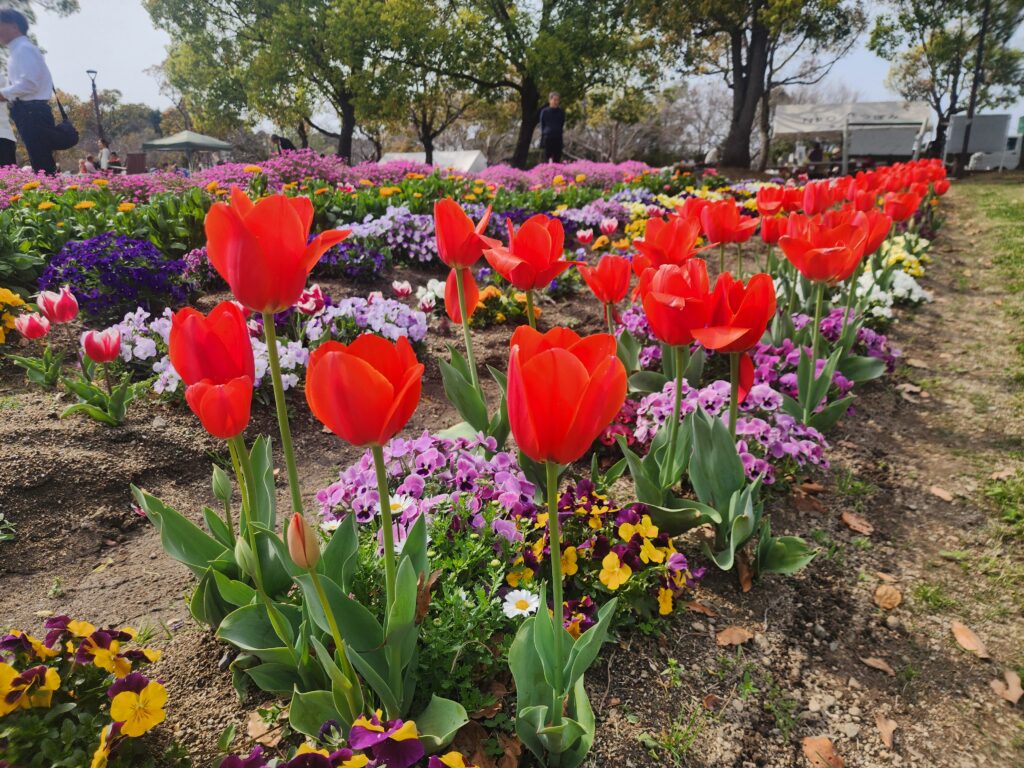 人が 多かったですが メンバーさんも楽しそうに花を見たり